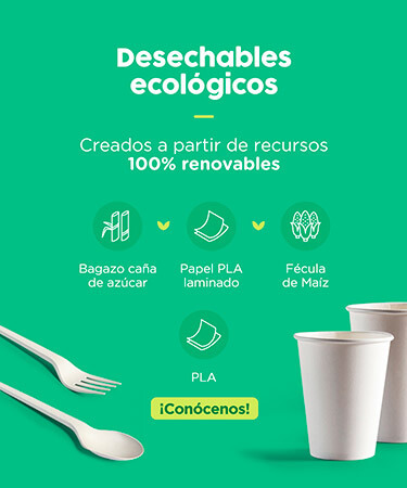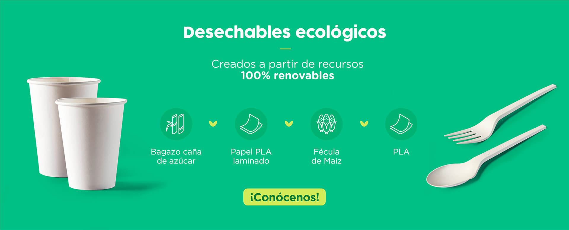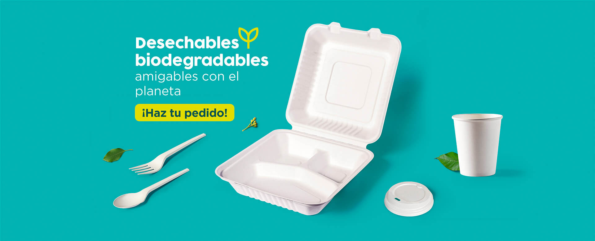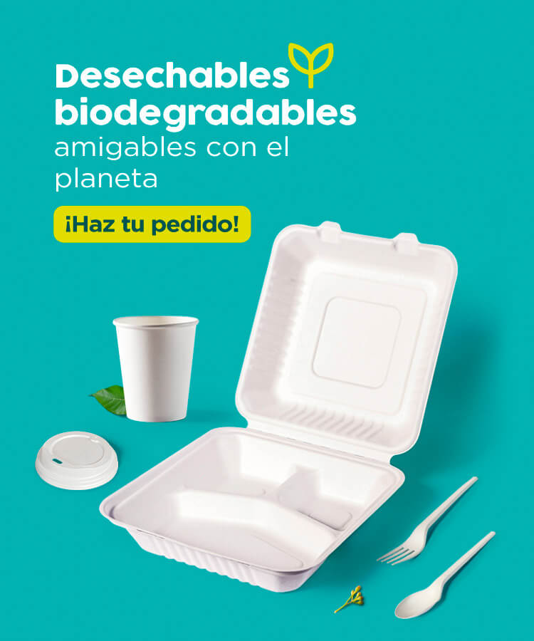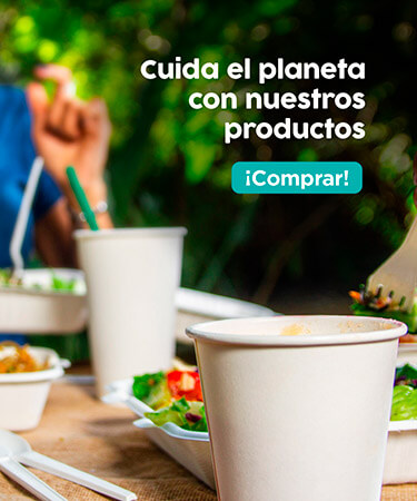 Distribuimos productos naturales, seguros y amigables con el planeta, hechos de bagazo de caña de azúcar, fécula de maíz, PLA y papel PLA, materiales que se degradan de 3 a 5 meses al interperie. Según el material, los residuos pueden ser reciclados, quemados, enterrados o compostados.